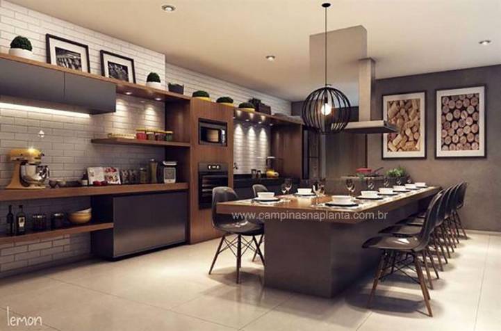 - Espaço gourmet completo (com bancada, cooktop, microondas, forno e refrigerador).
