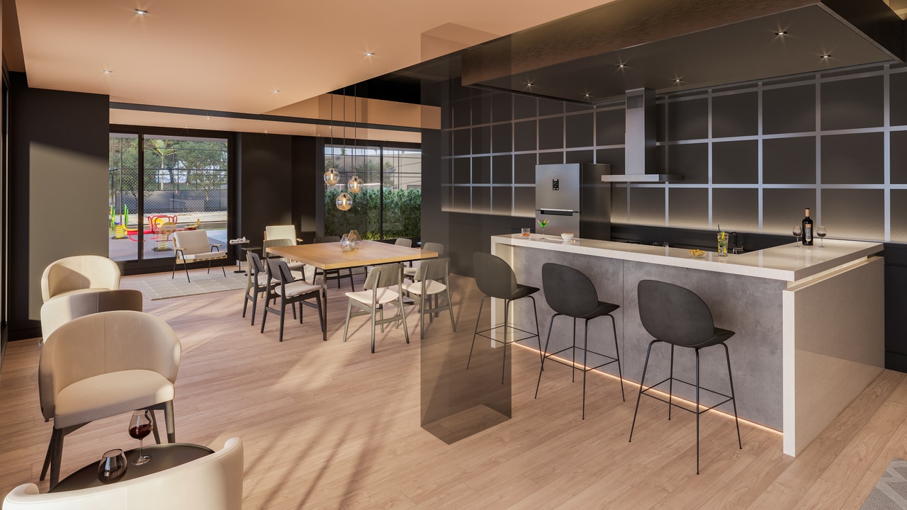 - Espaços Sociais: Salão de Festas , Espaço Gourmet e duas Churrasqueiras para celebrar momentos inesquecíveis.