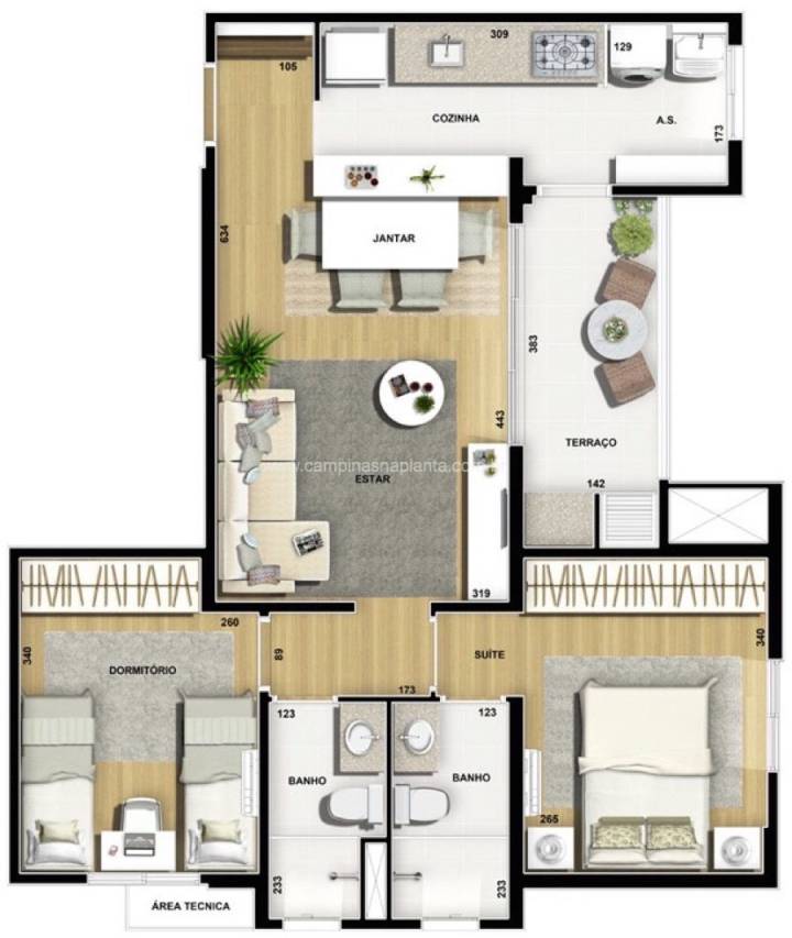 - Lazer completo dentro do condomínio: espaço gourmet, churrasqueira com forno de pizza e fire square (lareira ecológica), linda piscina com raia, prainha e solário, espaço fitness, playground, praça do encontro, praça da leitura e praça do descanso.