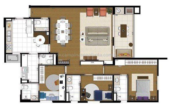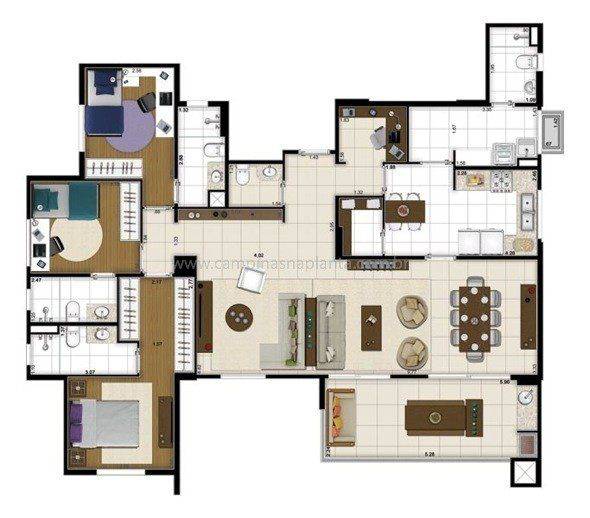 Perspectivas ilustradas desses apartamentos prontos no Cambuí