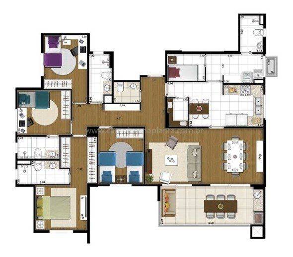 - Todas as plantas com lavabo, entrada de serviço, WC de empregada e cozinha com despensa.