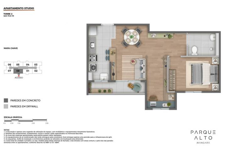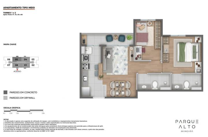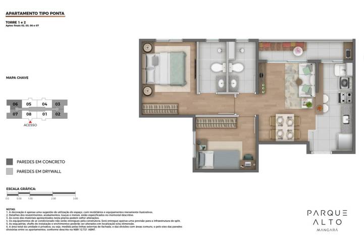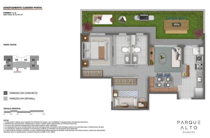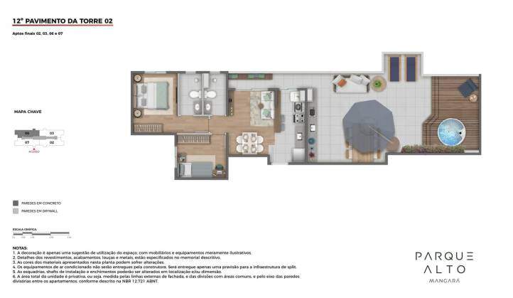 - Apartamentos cobertura no 12º pavimento da Torre 2 com terraços descobertos e previsão para futura instalação de ofurô.