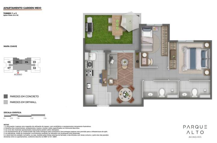 - Apartamentos garden exclusivos com área descoberta, suíte, varanda e ponto grill.