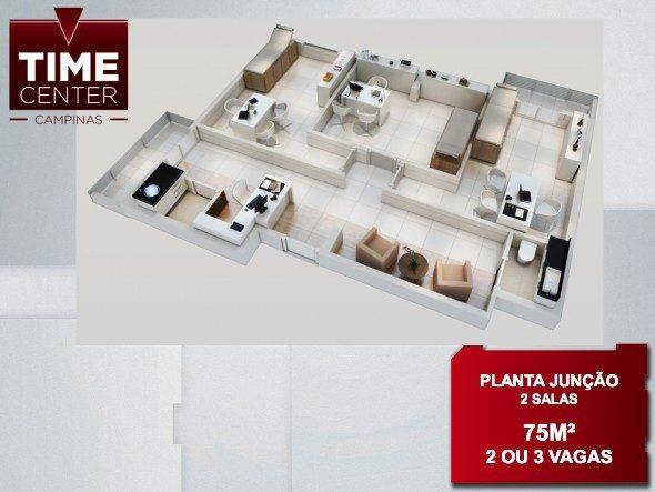 Time Center Campinas são salas comerciais prontas no centro da cidade, o projeto que você esperava há muito tempo, uma oportunidade de instalar seu escritório ou consultório em uma região com toda infraestrutura, sistema de transporte, grandes avenidas e facilidade de acesso. Time Center Campinas oferece salas comerciais a partir de 35m² com WC, 1 vaga de garagem e possibilidade de junção de salas adjacentes, chegando até 514m².
