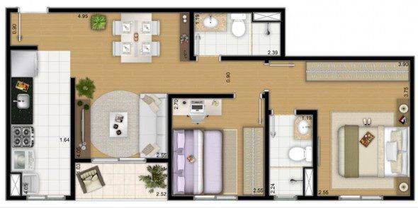 Lazer completo com piscinas adulto e infantil, fitness, salão de festas adulto e infantil, salão de jogos, brinquedoteca, playground, quadra coberta e churrasqueira.